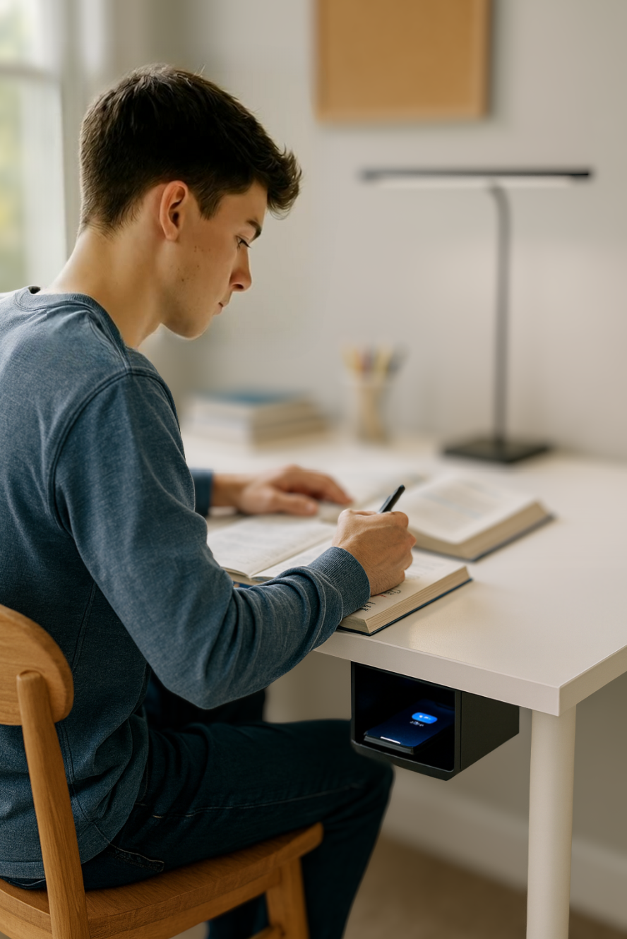 By storing your phone in the Phone Cubbie, you’ll find it easier to concentrate, retain more information, and finish assignments faster — giving you more free time and less stress.
